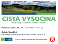 Čistá Vysočina Pomozte nám ve čtvrtek 27. 4. od 16 h uklidit náš areál. Pro každého účastníka buřt zdarma. Hořčice, kečup, pečivo zajištěno. Continue reading