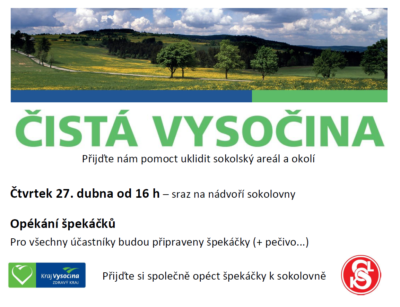 Pomozte nám ve čtvrtek 27. 4. od 16 h uklidit náš areál. Pro každého účastníka buřt zdarma. Hořčice, kečup, pečivo zajištěno.