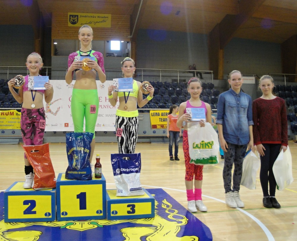 Adéla Vandasová, Zuzana Chrástová, Tereza a Aneta Havlíčkovy, Kristýna Černá, Adéla Spoustová, Aneta Římovská postupují na Mistrovství republiky v SAMC (Soutěžní aerobic master class).